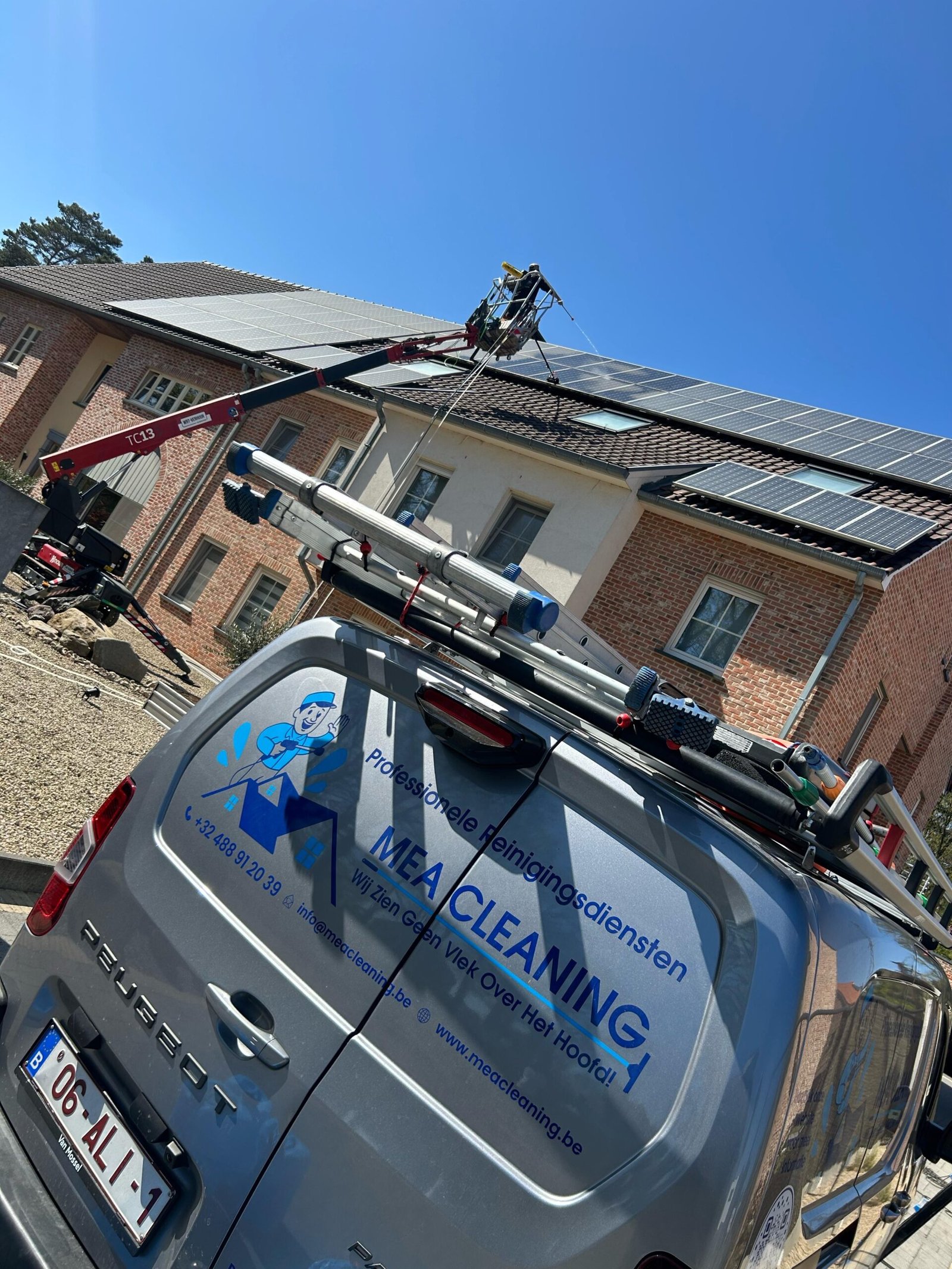 Wist je dat vervuilde zonnepanelen tot 20% minder rendement opleveren? Met een professionele reiniging van Mea Cleaning haal je het maximale uit je installatie — veilig, krasvrij en volledig afgestemd op jouw systeem.